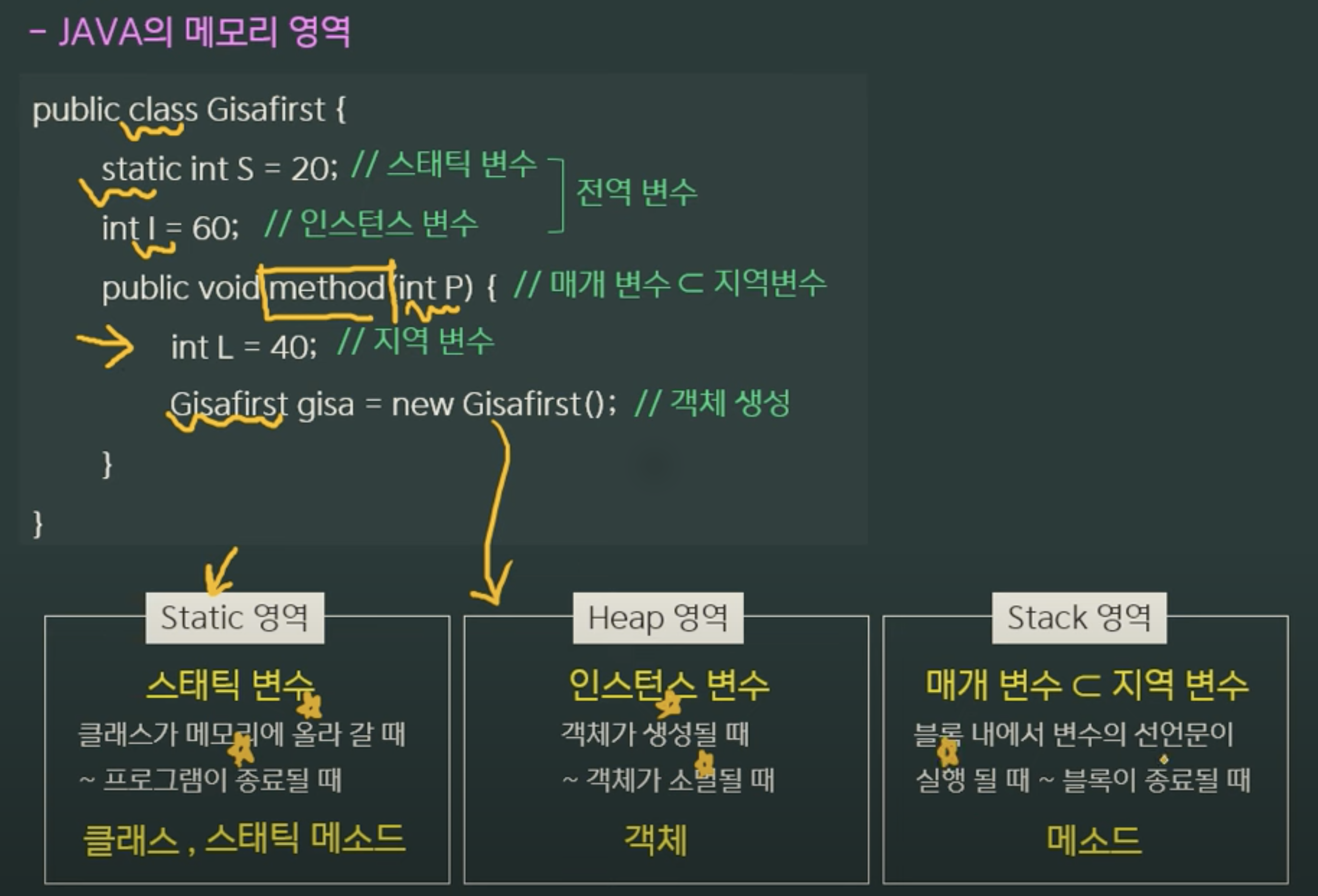 Memory memory = new Memory(); // 객체 생성 시 Heap 영역에 할당