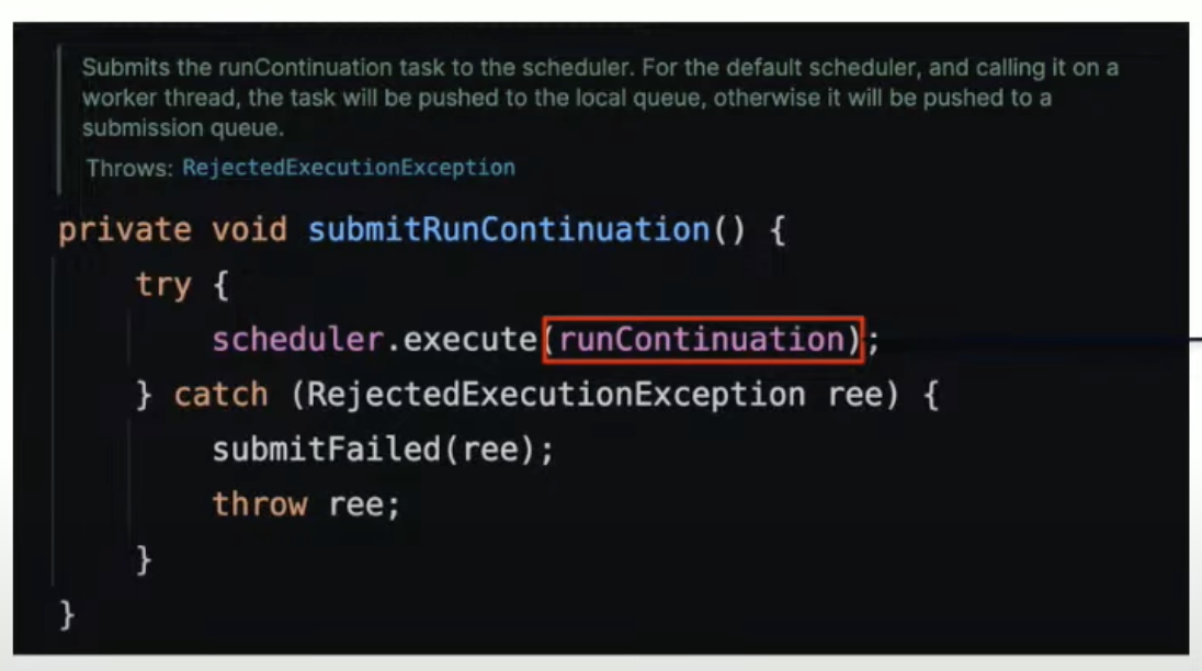 Coroutine의 비동기의 핵심은 작업의 중단 및 재시작하는 runContinuation 작업이다.