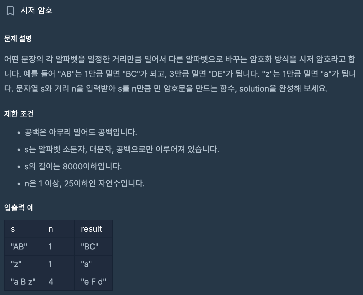 ㅁ 프로그래머스의 시저 암호 문제