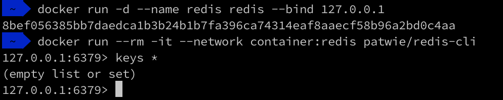 -it --network container:redis patwie/redis-cli