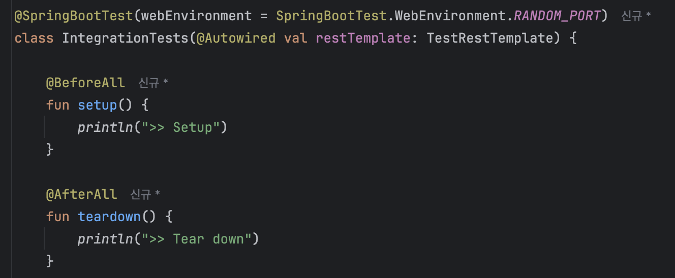 ㅇ 위 구성을 사용하면 @BeforeAll, @AfterAll을 모두 사용할 수 있다.