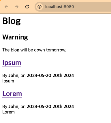 ㅇ 웹 애플리케이션을 다시 시작하고 새로 고치면 http://localhost:8080/ 블로그 홈페이지에 배너가 표시된다.