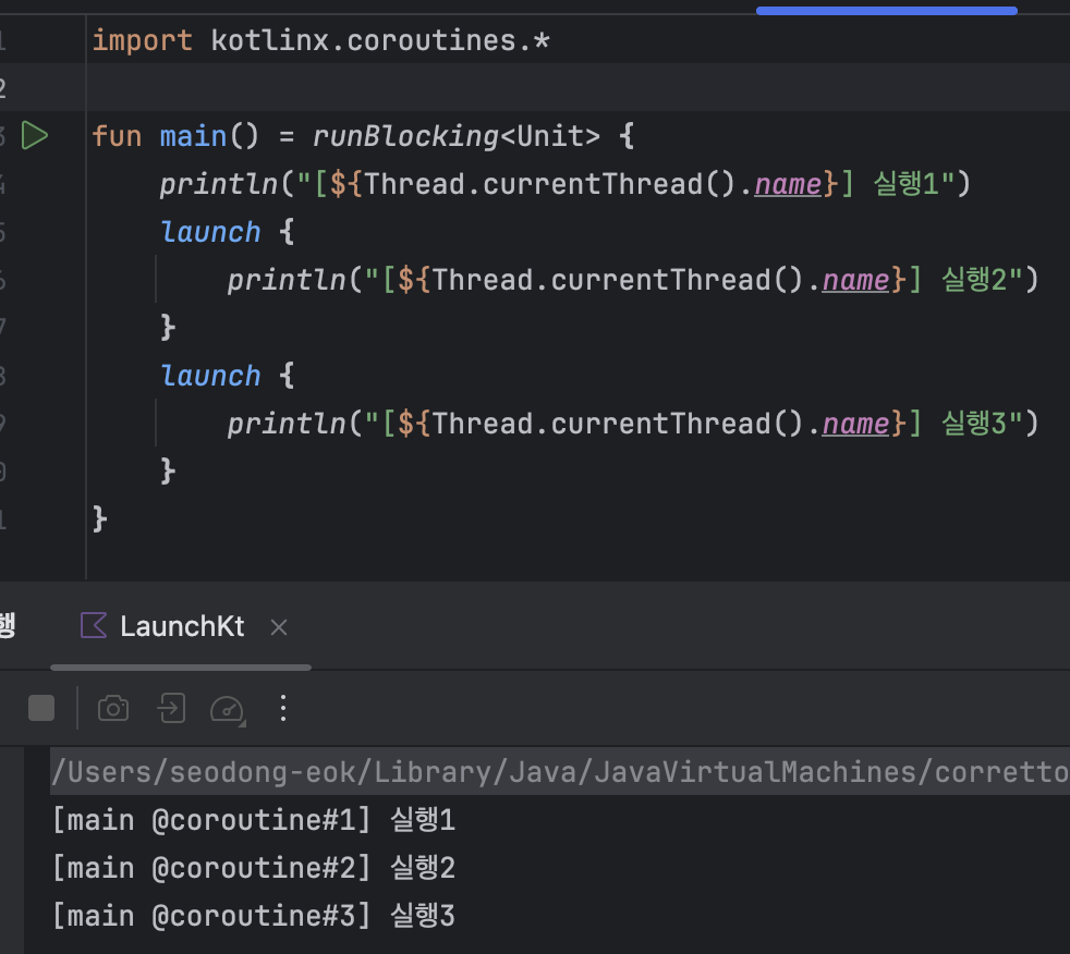 ㅇ 스레드의 이름 출력: JVM의 VM options에 -Dkotlinx.coroutines.debug