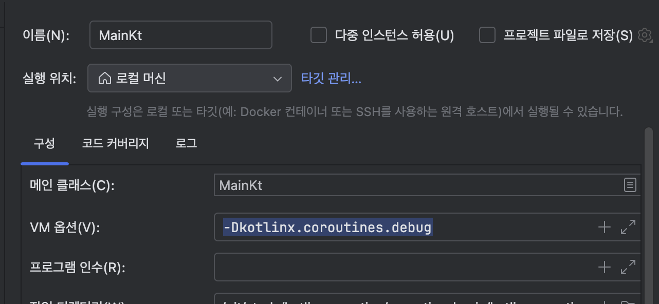 ㅁ 실행 중인 코루틴의 이름 출력 VM option