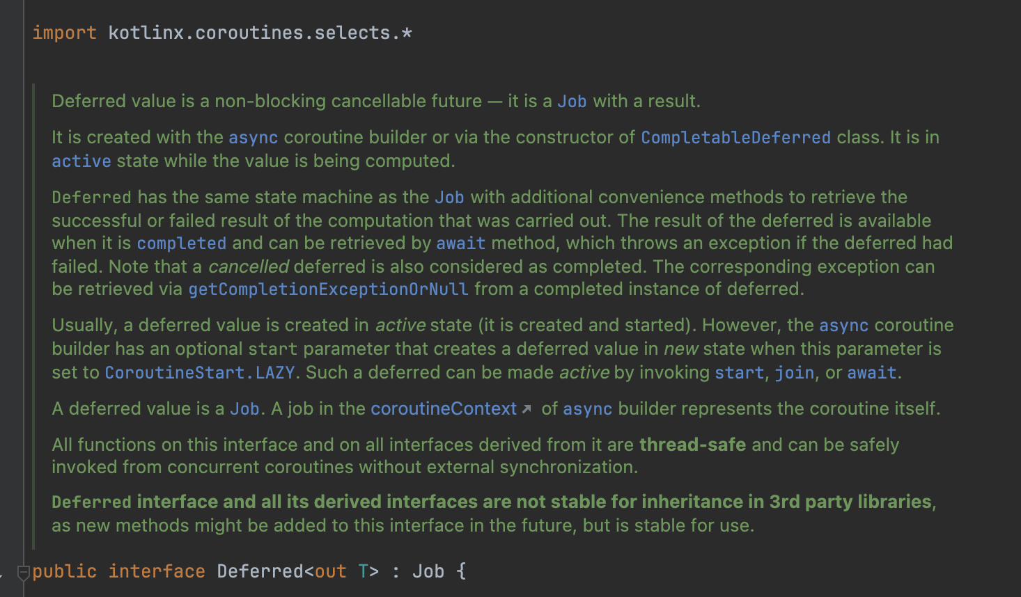 ㅇDeferred value is a non-blocking cancellable future — it is a Job with a result.