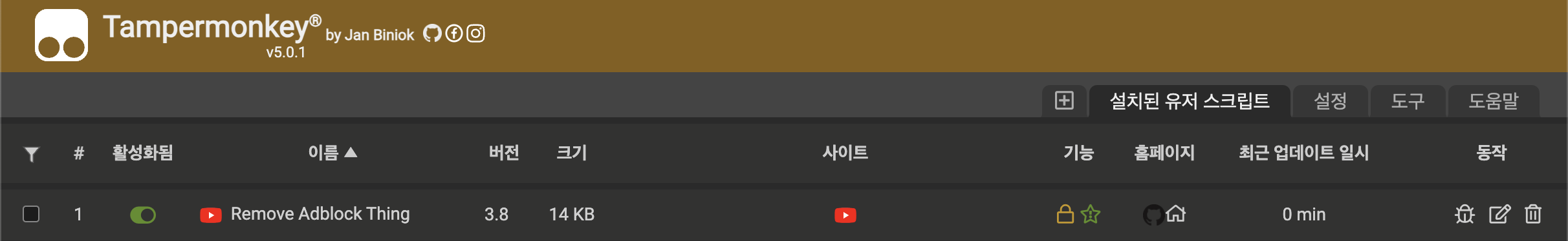 ㅇ Tampermonkey는 유튜브 접속 시 특정 스크립트를 자동으로 실행시켜 광고를 차단한다.