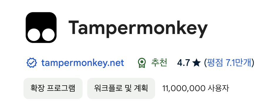 ㅇ Tampermonkey라는 크롬 확장프로그램을 설치한다.
