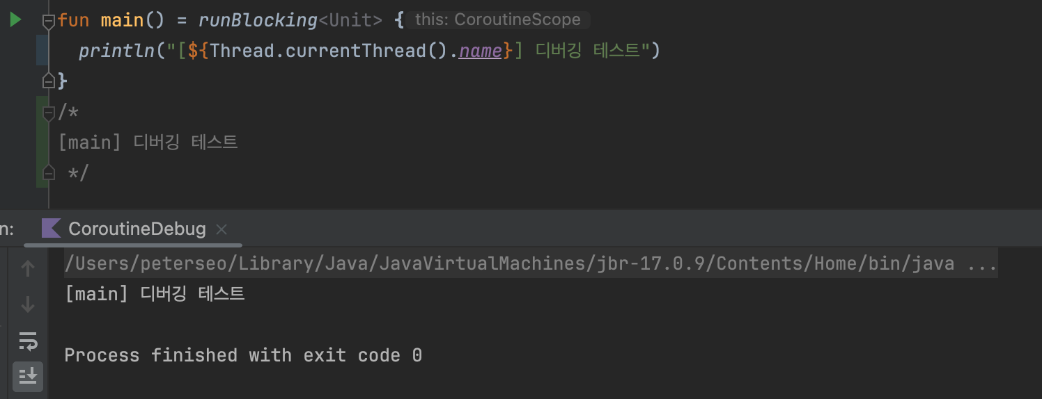[main @coroutine#1][실행시간: 0ms] 디버깅 테스트