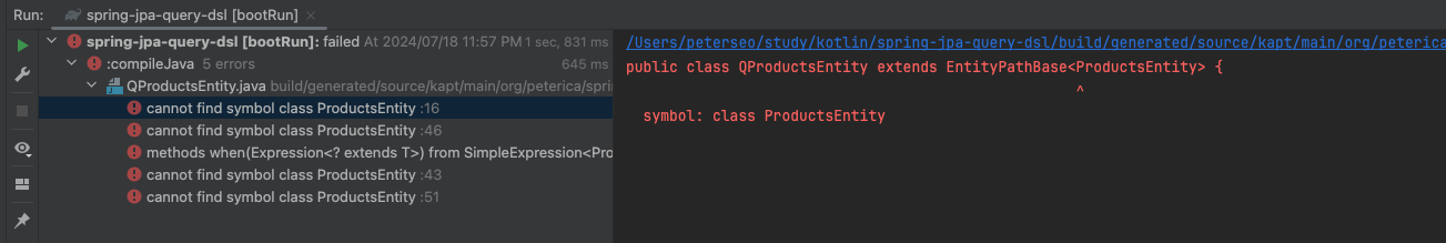 /Users/peterseo/study/kotlin/spring-jpa-query-dsl/build/generated/source/kapt/main/org/peterica/springjpaquerydsl/domain/QProductsEntity.java:16: error: cannot find symbol