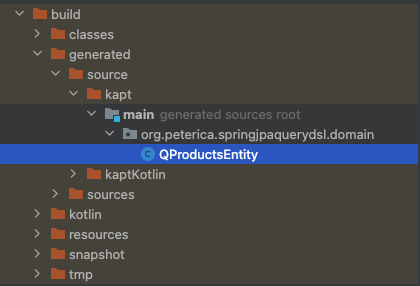 ㅇ 빌드 시 QueryDSL이 생성한 QProductsEntity에서 ProductsEntity를 참조하지 못하는 에러가 발생하였다.
