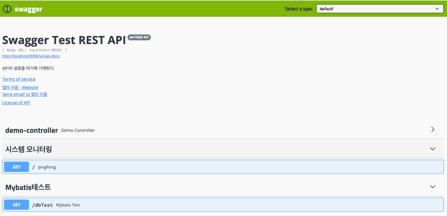 swagger 메인 페이지