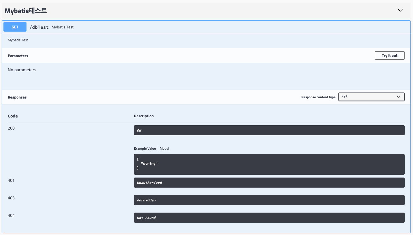 Try it out을 누르면 테스트 할 수 있는 페이지로 변경된다.