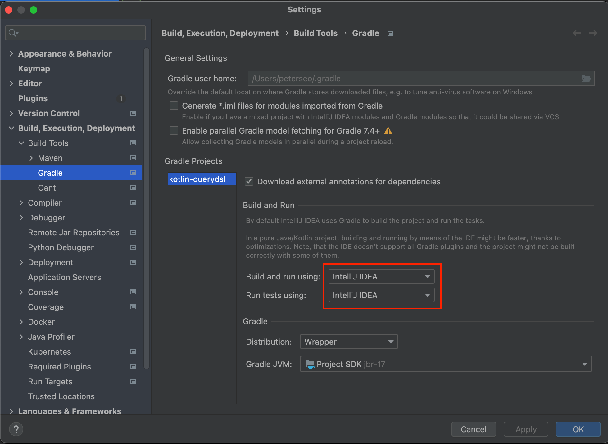 ㅇ IntelliJ IDEA> Settings에서 왼쪽 메뉴 Build, Execution, Deployment > Build Tools > Gradle으로 이동한다.