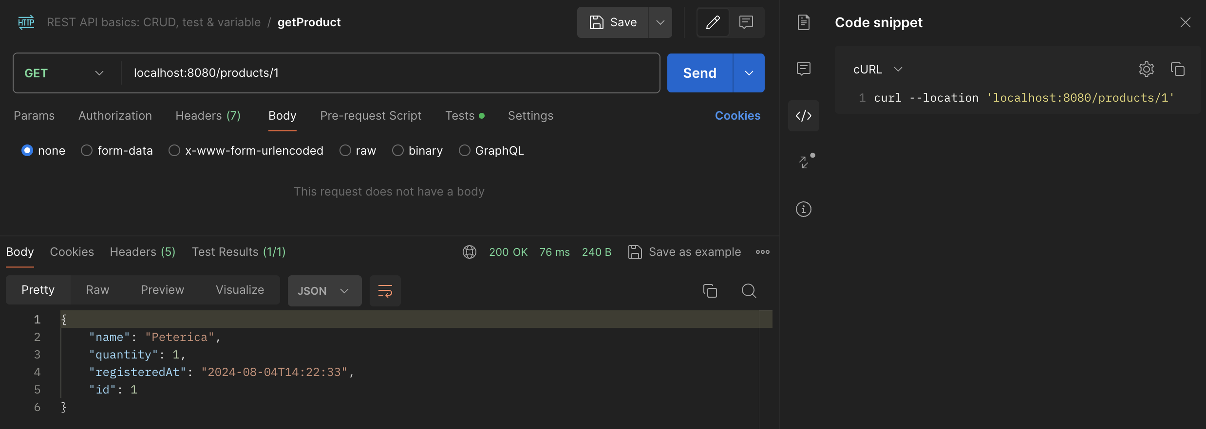 curl --location 'localhost:8080/products/1'{ "name": "Peterica", "quantity": 1, "registeredAt": "2024-08-04T14:22:33", "id": 1}