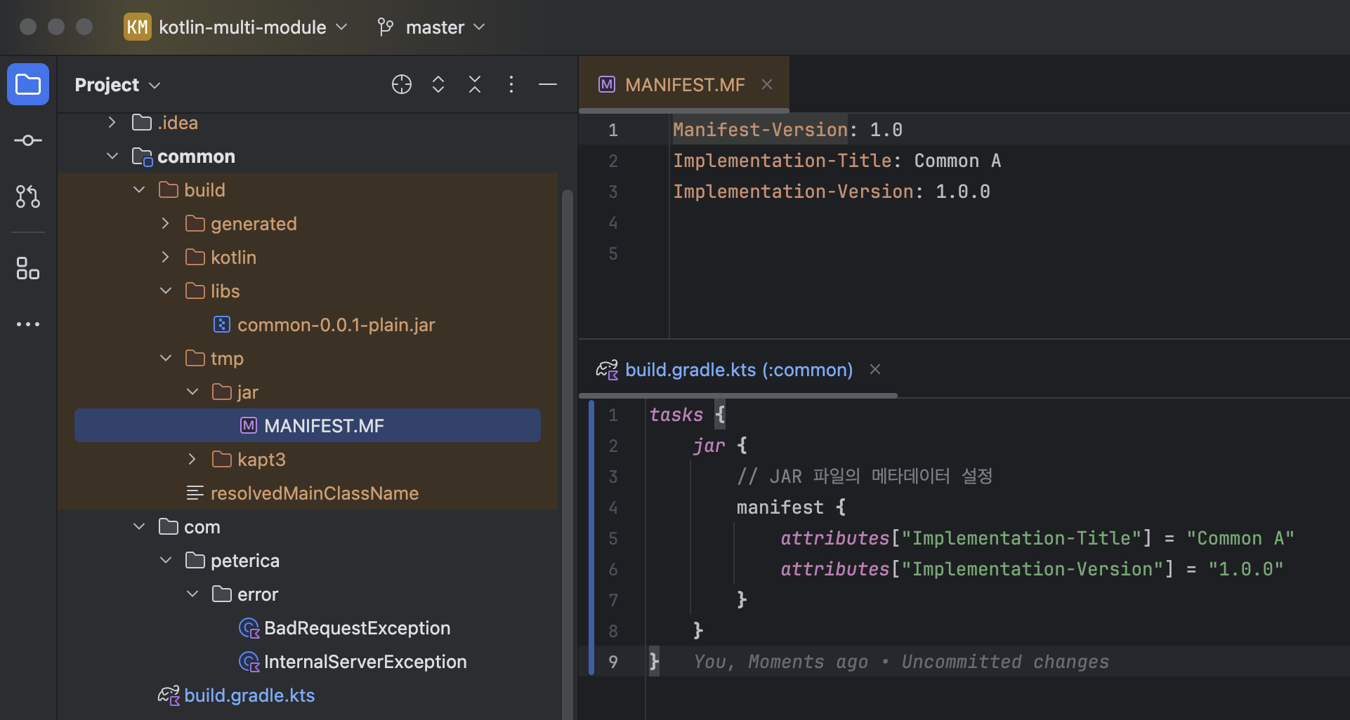ㅇ common/build/libs/ 디렉토리에 JAR 파일이 생성된다.