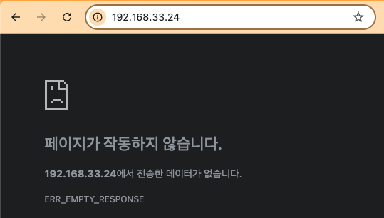 ㅇ 접근 URL로 접근하면 444, ERR_EMPTY_RESPONSE 에러가 발생한다.