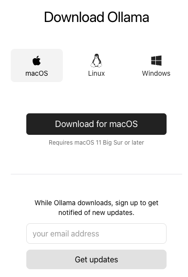 ㅇ Ollama를 다운받기 위해 이곳으로 이동한다.