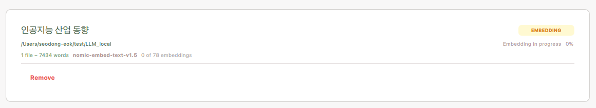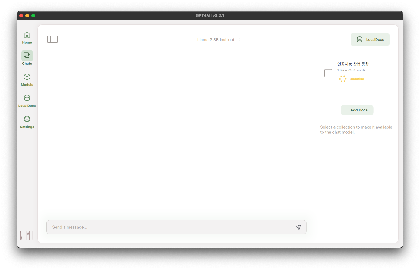 ㅇ 채팅에서도 localDocs의 update 상태를 확인할 수 있다.