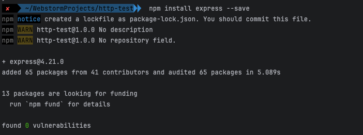 npm WARN http-test@1.0.0 No repository field.