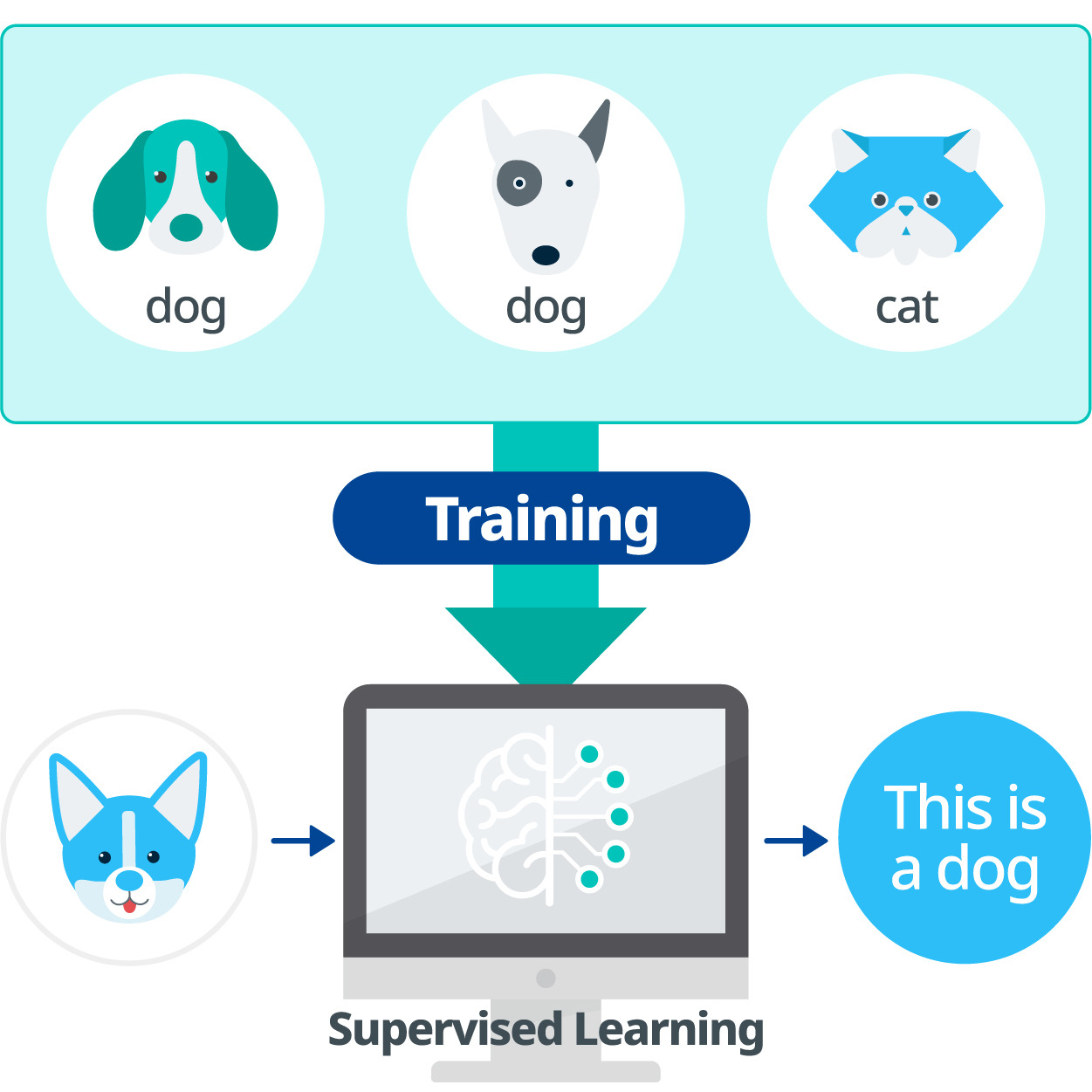 ㅇ 예를 들어, 개와 고양이를 구분하는 AI 모델을 지도학습으로 만들어 보자.
