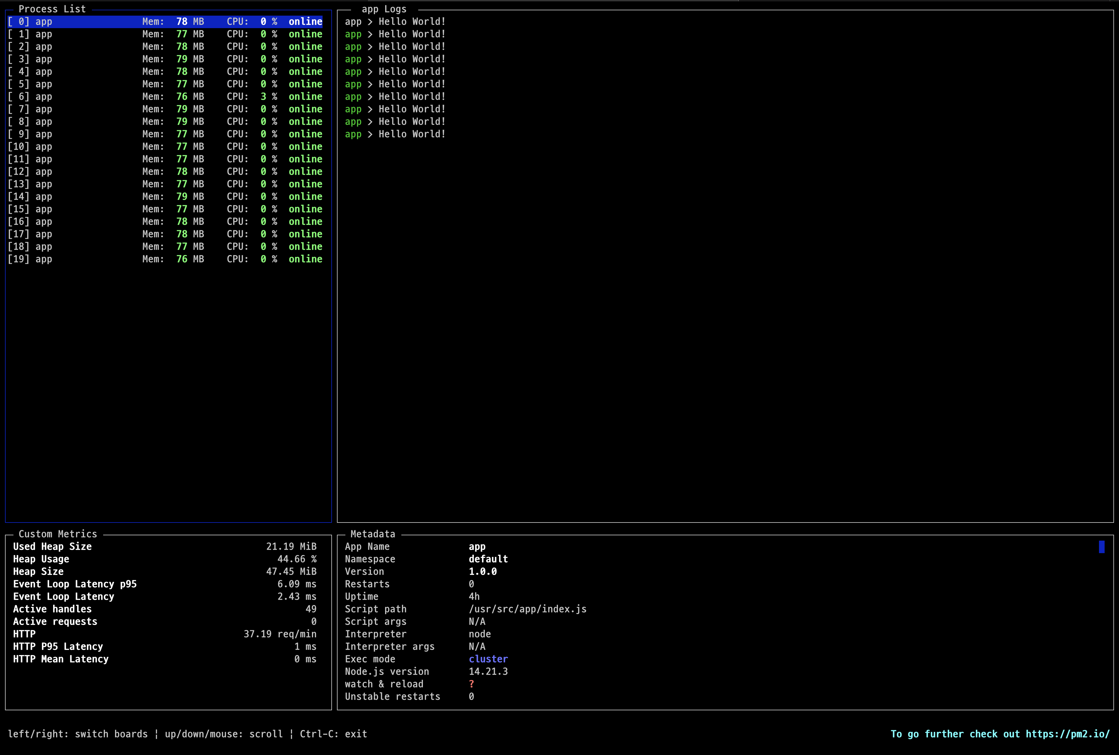 $ docker run -d -p 3100:3000 --name pm2test express-docker-pm2