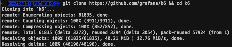 $ k6 run --out influxdb=http://localhost:8086 test.js