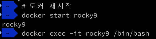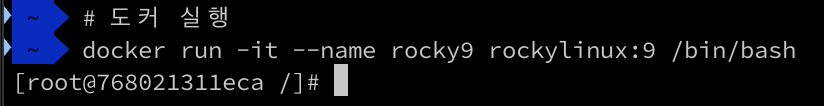 docker run -it --name rocky9 rockylinux:9 /bin/bash