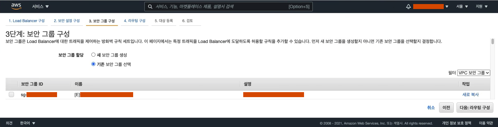 Application/Classic Load Balancer을 선택하고 생성한 로드밸런스를 마지막에 선택합니다.