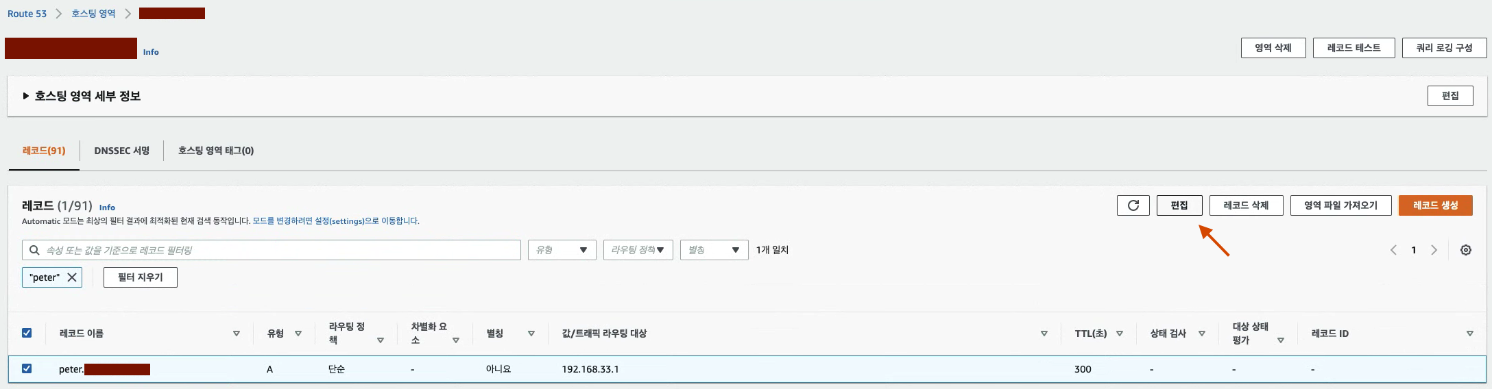 대상 레코드를 선택 후에 편집을 누릅니다.
