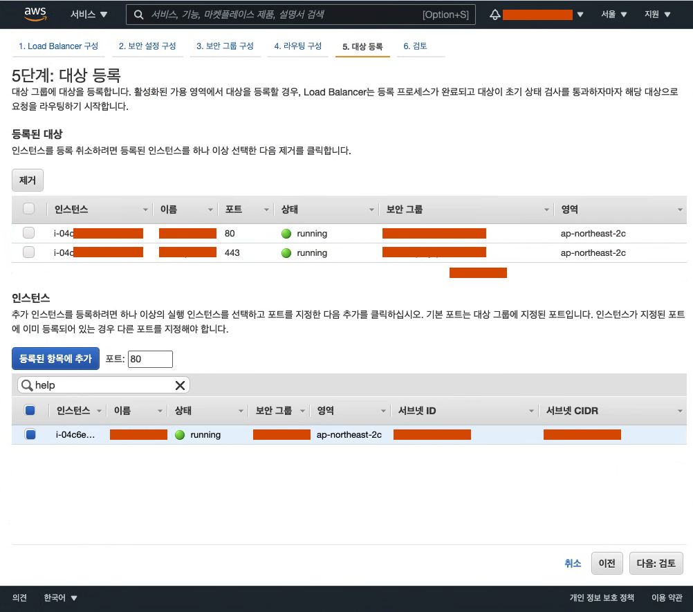 로드밸런서는 어떤 서버로 로드밸런싱을 할지 대상그룹이 필요합니다.