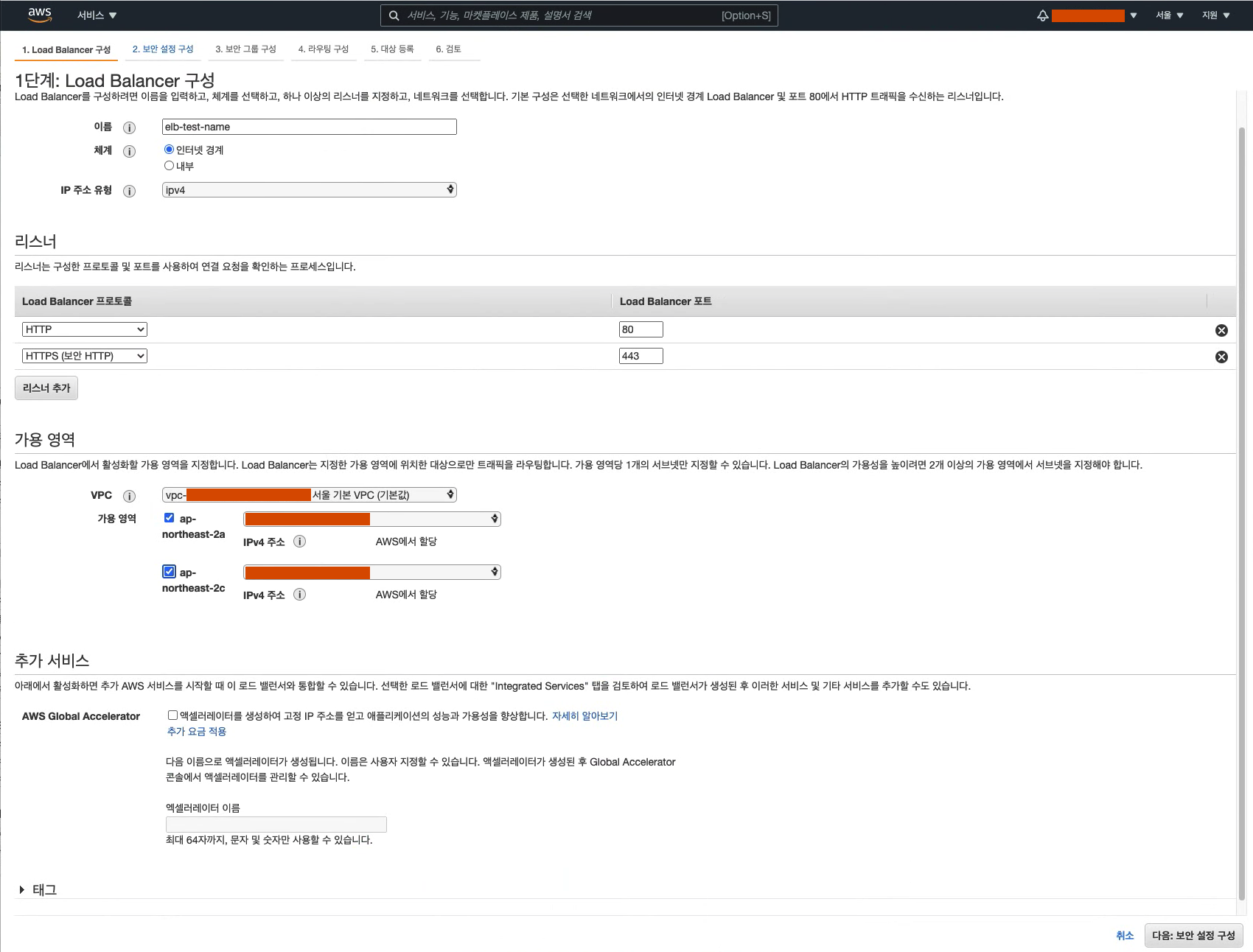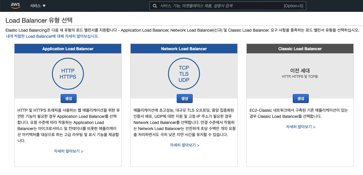 SSL인증서를 위한 HTTPS 통신을 위해 Application Load Balancer를 선택합니다.