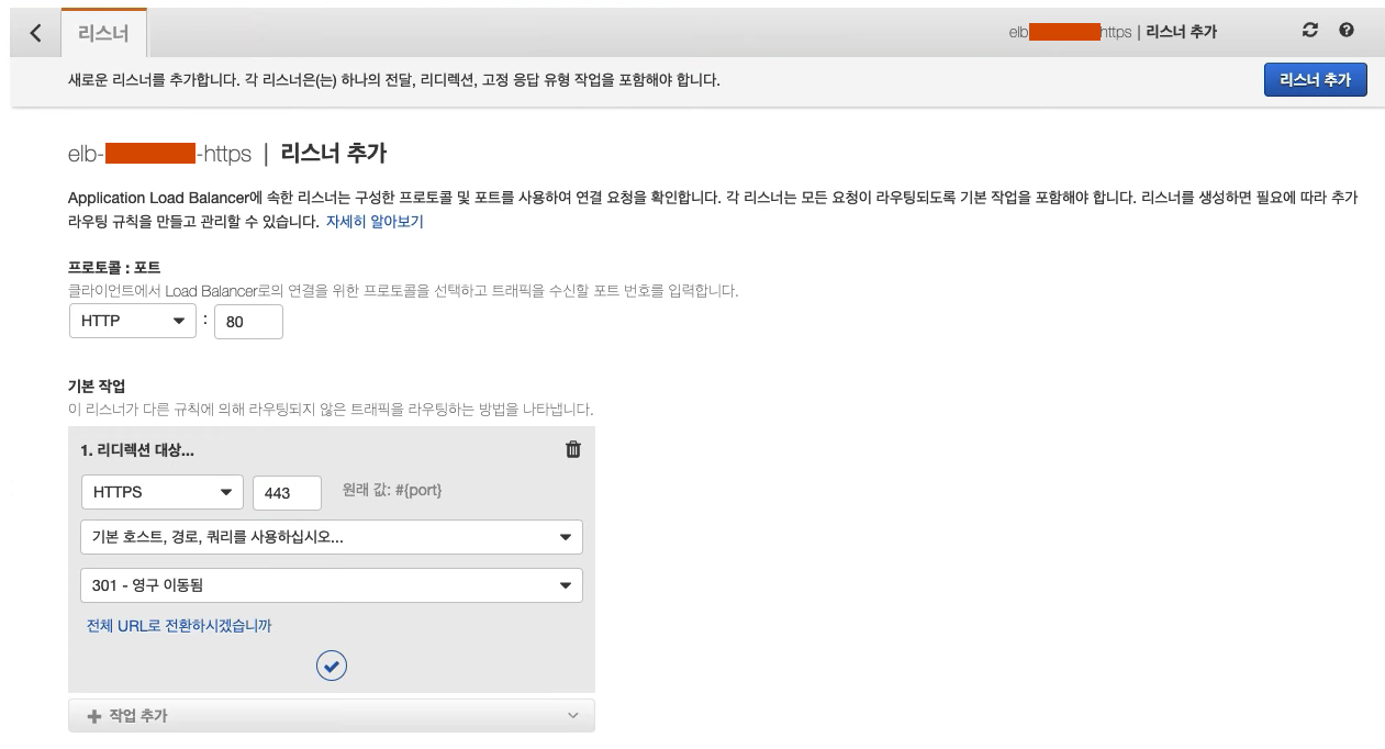 생성한 로드밸선스를 선택하고 리스너 추가를 버튼을 클릭합니다.
