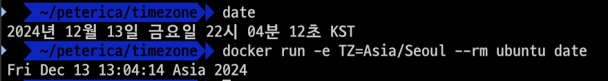 ㅇ -e 옵션을 사용하여 TZ(Timezone) 환경변수를 설정