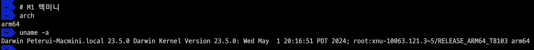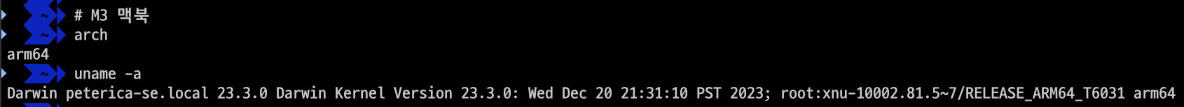 ㅇ arch와 uname -a 명령어를 통해 x86_64를 확인할 수 있다.