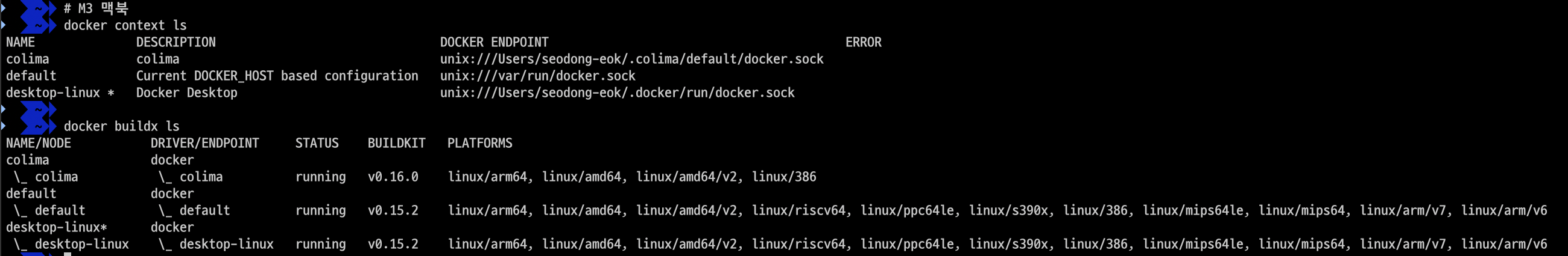 # docker context 확인