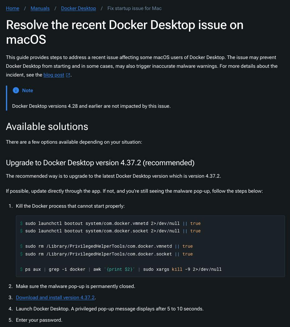 ㅇ Resolve the recent Docker Desktop issue on macOS