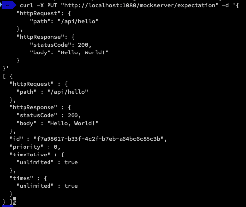 ㅇ MockServer에 응답을 설정하는 방법은 여러 가지가 있지만, 가장 간단한 방법은 curl을 사용하는 것이다.