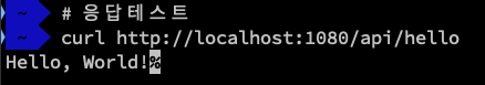 ㅇ 응답 테스트를 위해 curl 명령어를 실행하면 "Hello, World!"라는 응답을 받는다.