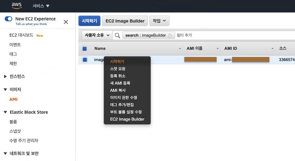 이미지>AMI로 이동하여 해당 이미지를 시작합니다.
