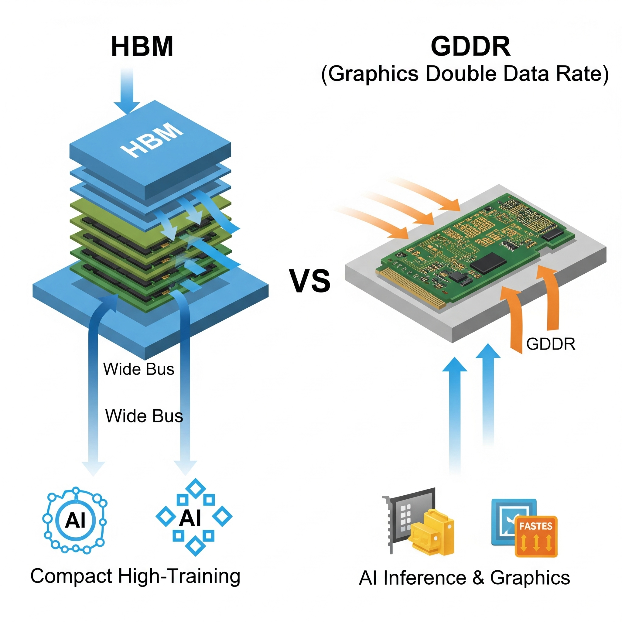 GDDR(Graphics Double Data Rate, 그래픽스 전용 메모리)은 AI 추론에 각각 최적화된 메모리로 볼 수 있습니다.